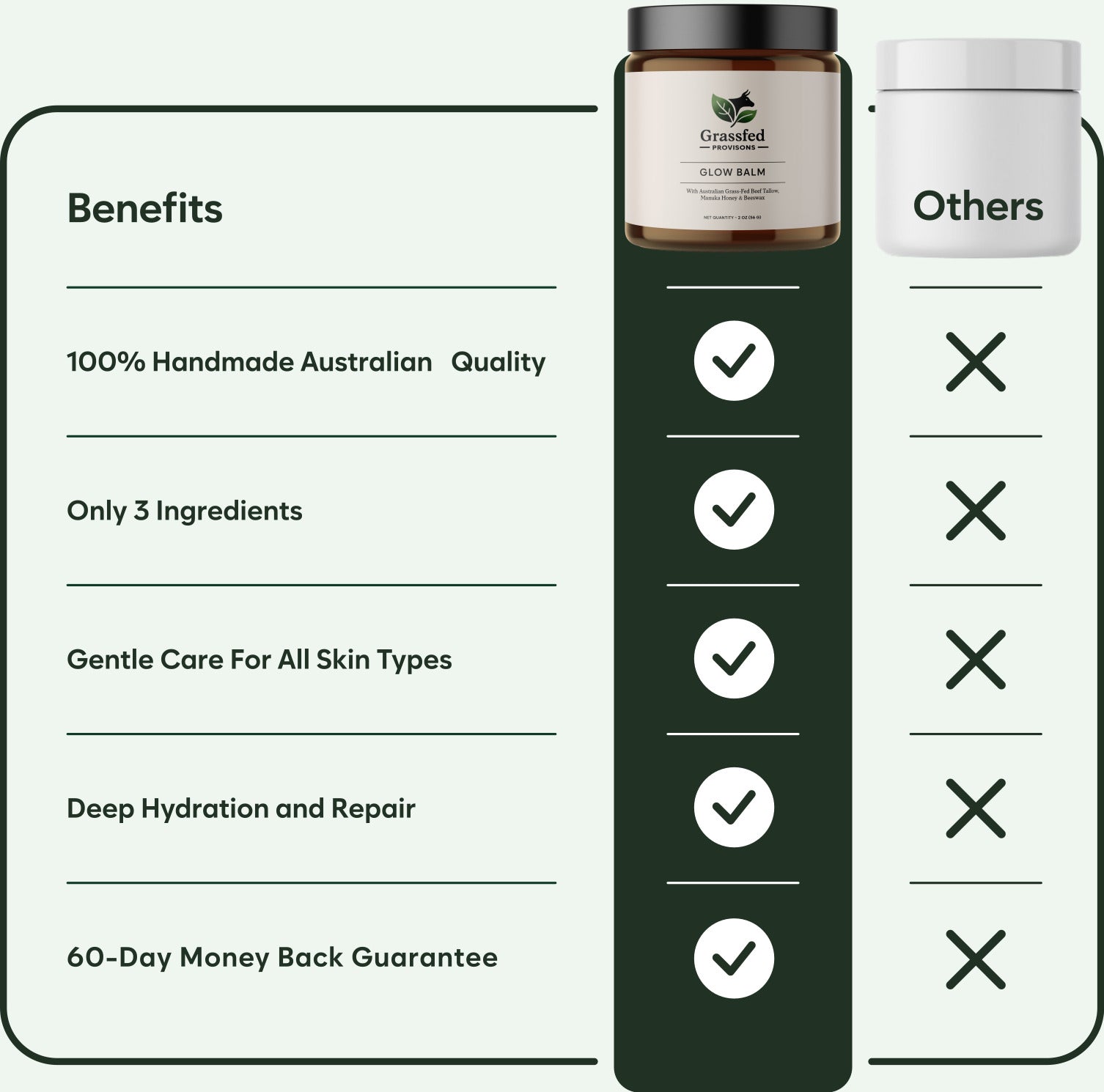 Crafted with only 3 simple ingredients-grass-fed tallow, manuka honey, and beeswax-this balm is 100% natural, chemical-free, and perfect for even the most sensitive skin types.